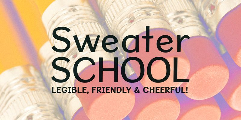 Sweater School is a friendly teacher’s font based on Cardigan. The structure is similar to the print style elementary school teachers prefer but with subtle compromises to improve readability.