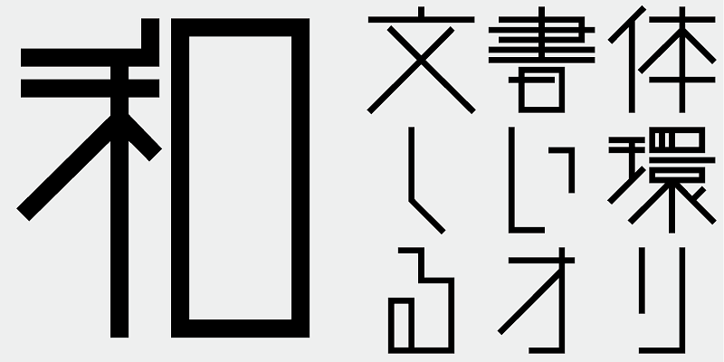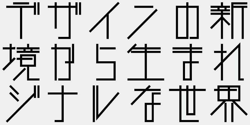 Each glyph of TA-Hougan is designed within a 10 x 10 grid centered in the EM body whose square is divided into twelve equal sections, like graph paper. Only straight horizontal, vertical, and diagonal lines are used. The overall typographic effect is prioritized, though a few glyphs may look unusual. As strokes are aligned on a grid, many strokes share the same positions and angles, and the slopes are well aligned, because the angle is limited to 45-degrees. With only a few characters, you can easily create a logotype effect.