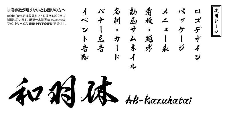 This font includes the top 1,000 kanji selected from usage frequency lists compiled by newspaper companies, publishers, and the National Institute for Japanese Language and Linguistics, along with 206 kana characters, alphanumeric characters, and a carefully selected set of typographic symbols.