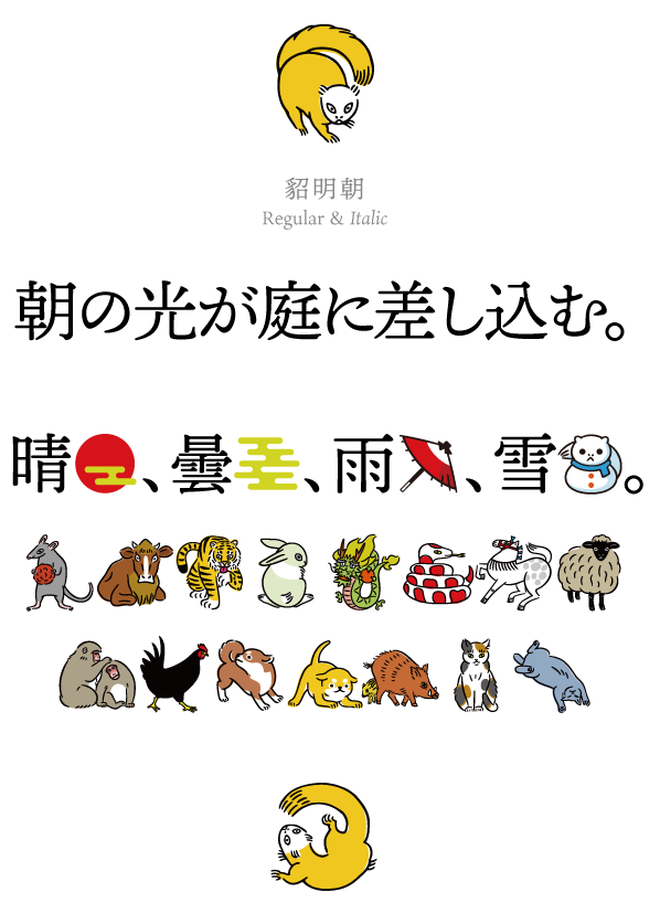 Ten Mincho also features a full set of Latin glyphs, collectively known as Ten Oldstyle and designed by Robert Slimbach. This relatively feature-rich Latin subset includes OpenType features such as small caps and old-style figures. Finally, look for a small number of color emoji in an SVG table, some of which are accessible as alternates.