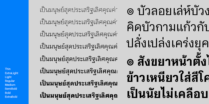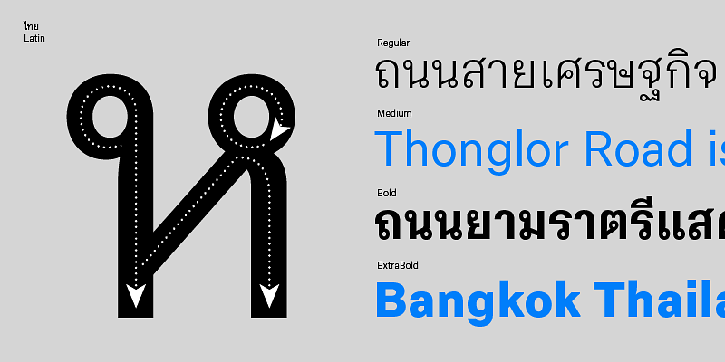 Thonglor Soi 4 Nr is a narrow version in the Thong Soi 4 series. It was designed off of Thonglor Soi 4 in scenarios that required a narrower limited working area such as on applications on smart phones. This version will be familiar with natives as Thai letterforms traditionally have narrow forms since the beginning.