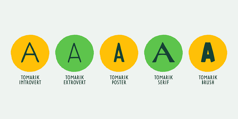 Tomarik is a vibrant hand-drawn type collection and a playful addition to any creative depository. Assembled with the “pick-and-mix” idea in mind, it offers a great variety of flavour and zest. Tomarik features five distinctive weights and includes OpenType features such as fractions, inferiors and superiors.