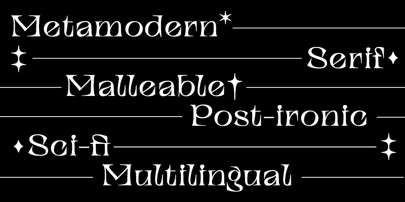 TT Alientz Serif is dynamic, viscous, ductile and very prickly display typeface. As part of this project, we decided to investigate the influence of a foreign substance and the consequent transformation of the original forms, which ultimately leads to extreme visual changes. TT Alientz Serif has a lot of smooth lines and not quite standard strokes contrast. Despite its extremeness, the serif will look good both in large and in small body sizes.