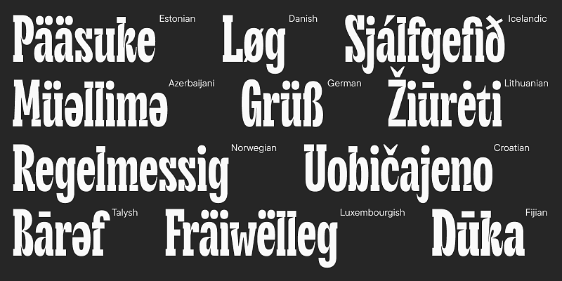 Fonts in the Adobe Fonts library include support for many different languages, OpenType features, and typographic styles.