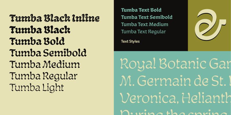 Tumba draws its inspiration from two different historic genres, the uncial and the blackletter, and manages to interpret those old forms through a modern lens with a unique stroke and ductus.