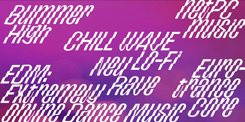 The letterforms of Velzyland are equally at home in branding for a yoga studio or craft brewery as they are for the identity design of an electronic music festival or a contemporary art exhibition. The typeface comes complete with an extended set of punctuation and accented characters supporting most Eastern and Western European languages. Velzyland was conceived as a “unicase” design, where the uppercase and lowercase letters share the same height. So while the letter shapes are different between cases many of them can be interchanged as “alternates” for each, especially handy for logotypes or simply to vary the texture of your typography. To make use of the extreme slant angle of Velzyland, try using a diagonal baseline. Tight leading can also work well to echo the tight horizontal letter spacing. The impactful bold letterforms are sure to stand out as large titles on top of photography, for eye-catching social media posts, or as energetic headings in web or print design.