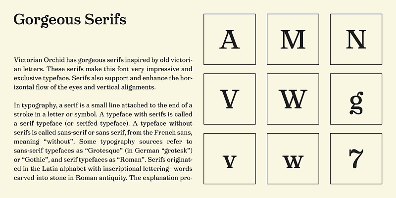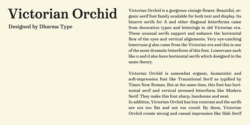 Victorian Orchid is a gorgeous vintage flower available for both text and display. This font has beautiful, organic, and bizarre serifs which create strong and casual impression.
