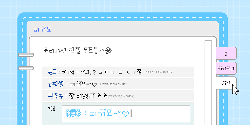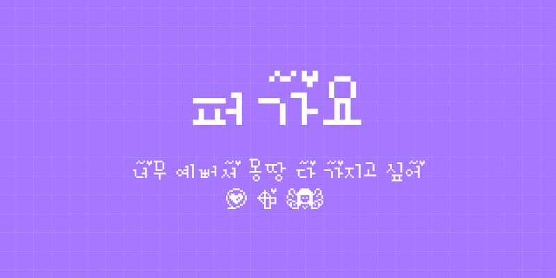 “Furgayo” is uniquely characterized by wavy hearts adorning letters such as 가, 니, 어, and 시. It encapsulates the charm and kindness inherent in nostalgic comments like “Scrapping~♥”, once common on personal webpage photo scrapes. Supporting 11,172 Hangul characters, this font allows for the expression of every Korean letter.
