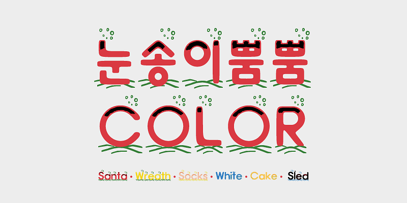 YoonC Nunsongippumppum is a vibrant color font crafted by the Yoondesign Group, a firm dedicated to exploring the evolving nature of typeface application and advancements in font technology. Distinguished by their pictorial attributes, color fonts possess color or texture within the font file itself, eliminating the need for users to manually select a text color. With Nunsongippumppum Santa, Wreath, Socks, and White, you can immerse yourself in the Christmas spirit anytime and anywhere.